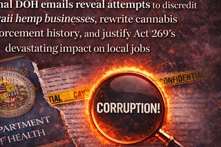 Internal DOH emails reveal attempts to discredit Hawaii hemp businesses, rewrite cannabis enforcement history, and justify Act 269’s devastating impact…